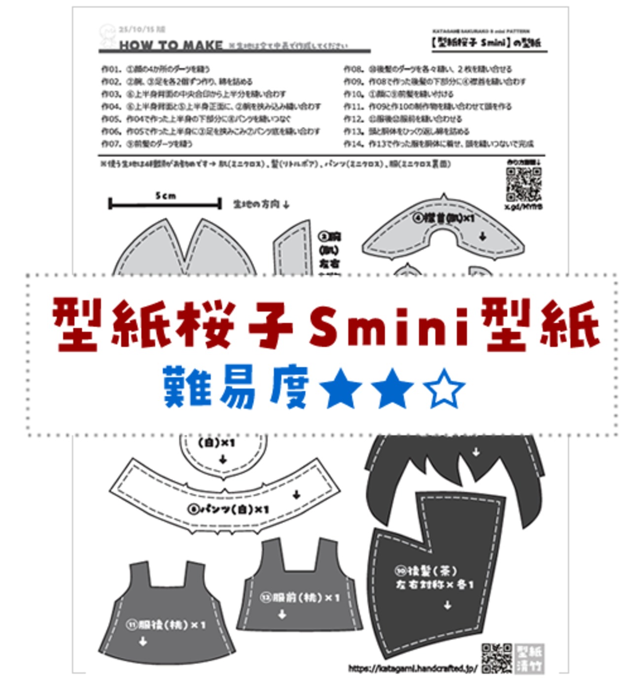 を購入すると、約2体分の型紙桜子SEが作れます。