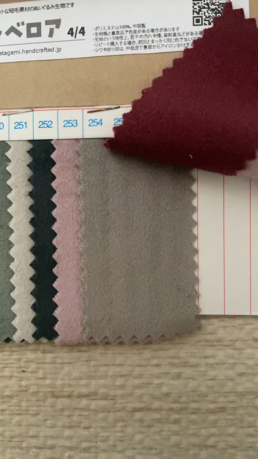 ・ベロア調の、光沢がないマットな短毛素材のぬいぐるみ生地です。
