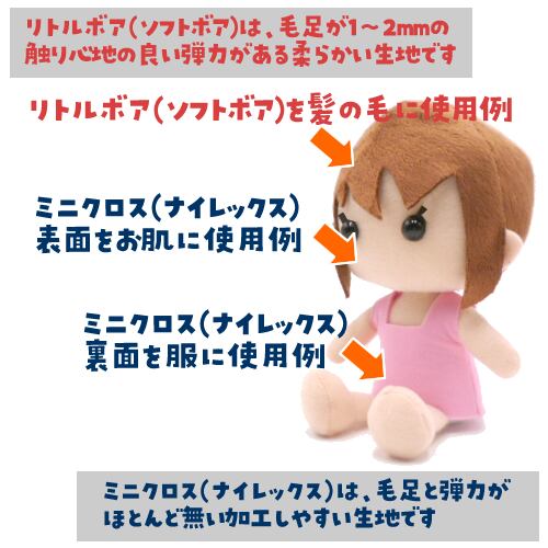 ミニクロスは、毛足と弾力がほとんど無い、ぬいぐるみ用生地です。